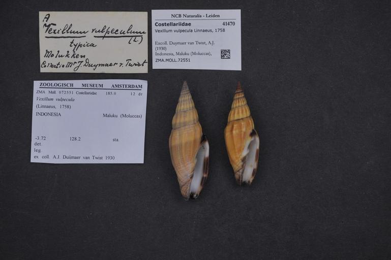 | Keywords: Naturalis Biodiversity Center - ZMA.MOLL.72551 - Vexillum vulpecula (Linnaeus, 1758) - Costellariidae - Mollusc shell.jpeg artwork Dimensions artwork Document type Costellariidae Vexillum Individual count Infraspecific epithet Infraspecific rank Institution Naturalis Kind of unit artwork Kind of unit specimen shell Life stage Indonesia Maluku Moluccas lat -3 72 lon 128 2 Medium artwork Nomenclatural code Collection remarks Moll Source institute Zoölogisch Museum Amsterdam Scale the width of the text on the species/QR-code label is 38 mm Occurrence ID page Neogastropoda Other fields Other versions artwork Permission license Naturalis donation CC-0 Mollusca Publication location Scientific name Vexillum vulpecula Linnaeus 1758 Scientific name authorship Linnaeus 1758 Source url http //bioportal naturalis nl Specific epithet vulpecula State or province Maluku Moluccas Subject keywords artwork Subject keywords publication Title artwork Title publication Type status Uploaded with GWToolset Naturalis_Biodiversity_Center_-_ZMA MOLL 72551_-_Vexillum_vulpecula_ Linnaeus _1758 _-_Costellariidae_-_Mollusc_shell http //medialib naturalis nl/file/id/ZMA MOLL 72551/format/large Molluscs at Naturalis from the Zoölogisch Museum Amsterdam Media donated by Naturalis Biodiversity Center Vexillum vulpecula Vexillum |