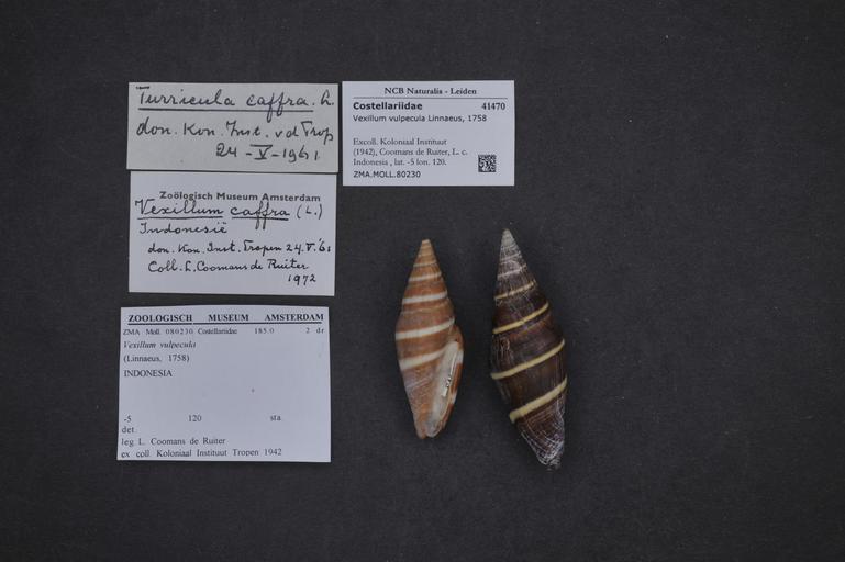 | Keywords: Naturalis Biodiversity Center - ZMA.MOLL.80230 - Vexillum vulpecula (Linnaeus, 1758) - Costellariidae - Mollusc shell.jpeg artwork Dimensions artwork Document type Costellariidae Vexillum Individual count Infraspecific epithet Infraspecific rank Institution Naturalis Kind of unit artwork Kind of unit specimen shell Life stage Indonesia lat -5 lon 120 Medium artwork Nomenclatural code Collection remarks Moll Source institute Zoölogisch Museum Amsterdam Scale the width of the text on the species/QR-code label is 38 mm Occurrence ID page Neogastropoda Other fields Other versions artwork Permission license Naturalis donation CC-0 Mollusca Publication location Scientific name Vexillum vulpecula Linnaeus 1758 Scientific name authorship Linnaeus 1758 Source url http //bioportal naturalis nl Specific epithet vulpecula State or province Subject keywords artwork Subject keywords publication Title artwork Title publication Type status Uploaded with GWToolset Naturalis_Biodiversity_Center_-_ZMA MOLL 80230_-_Vexillum_vulpecula_ Linnaeus _1758 _-_Costellariidae_-_Mollusc_shell http //medialib naturalis nl/file/id/ZMA MOLL 80230/format/large Molluscs at Naturalis from the Zoölogisch Museum Amsterdam Media donated by Naturalis Biodiversity Center Vexillum vulpecula Vexillum |