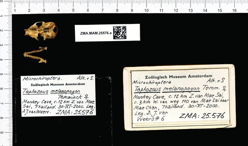 | Keywords: Naturalis Biodiversity Center - ZMA.MAM.25576.a pal - Taphozous melanopogon - skull.jpeg artwork Dimensions artwork Document type Taphozous Individual count 1 Infraspecific epithet Infraspecific rank Institution Naturalis Kind of unit artwork Kind of unit specimen skull Life stage Monkey Cave c 12 km z van Mae Sai c 3 km w van weg 110 van Mae Sai nar Mae Chan Thailand Medium artwork Nomenclatural code Occurrence ID page Other fields Other versions artwork Permission license Naturalis donation CC-0 Publication location Scientific name Taphozous melanopogon Scientific name authorship female Source url http //bioportal naturalis nl Specific epithet melanopogon State or province Subject keywords artwork Subject keywords publication Title artwork Title publication Type status Uploaded with GWToolset Naturalis_Biodiversity_Center_-_ZMA MAM 25576 a_pal_-_Taphozous_melanopogon_-_skull http //medialib naturalis nl/file/id/ZMA MAM 25576 a_pal/format/large Mammals at Naturalis from the Zoölogisch Museum Amsterdam Media donated by Naturalis Biodiversity Center Taphozous melanopogon Taphozous |