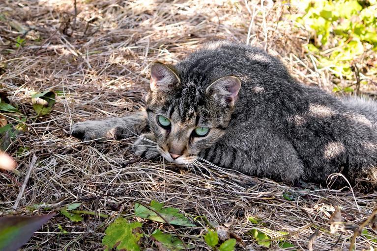 Keywords: nature cat grass garden eyes autumn lie rest mammal animal pet