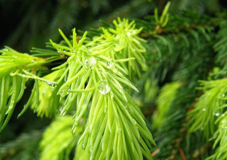 Keywords: nature detail plants macro needles spruce dew