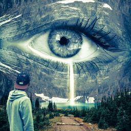 Keywords: nature landscape mountains lake mother earth eye sad cry rock forest waterfall water trees environment boy hiking away trail rocky landscape pupil