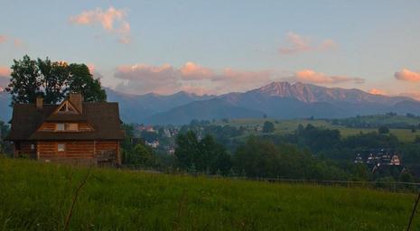 Keywords: nature landscape top view sky view sunset mood clouds scenery spring vegetation mountains the alps evening romanticism the silence field green