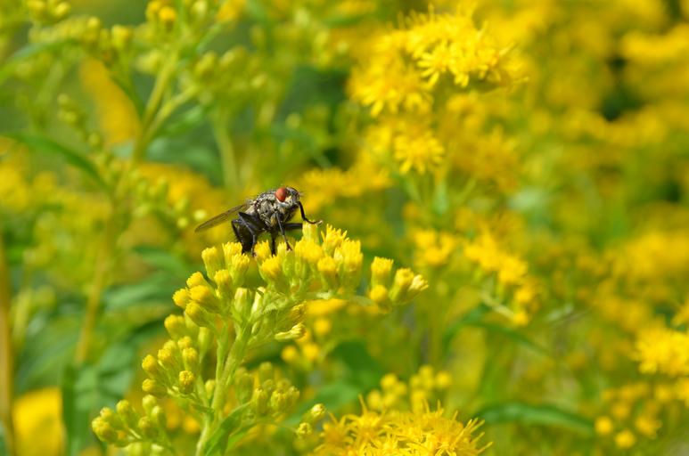 Keywords: nature plant bush yellow green flower bug fly pollen eye