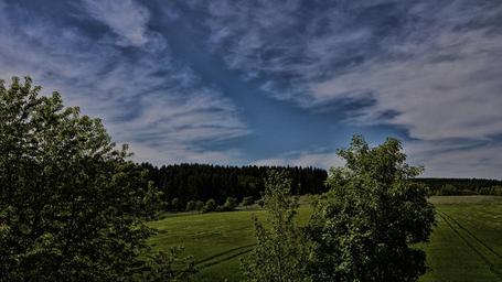 Keywords: nature sky dramatic gloomy blue clouds meadow forest tree beautiful background