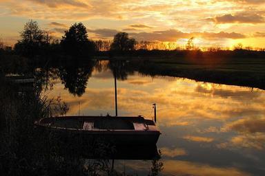 Keywords: nature sunset water boot romantic mirroring orange sky evening boat pond lake forest water reflection sunset