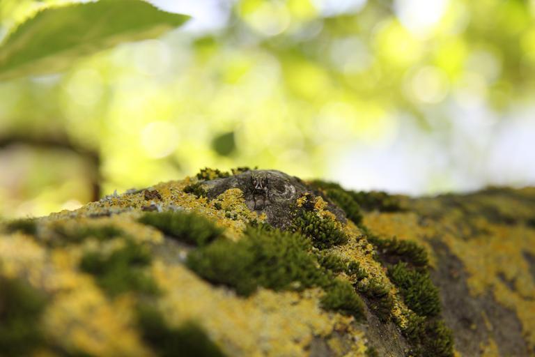 Keywords: nature tree bark fly close moss green brown wood old tree log grove insect