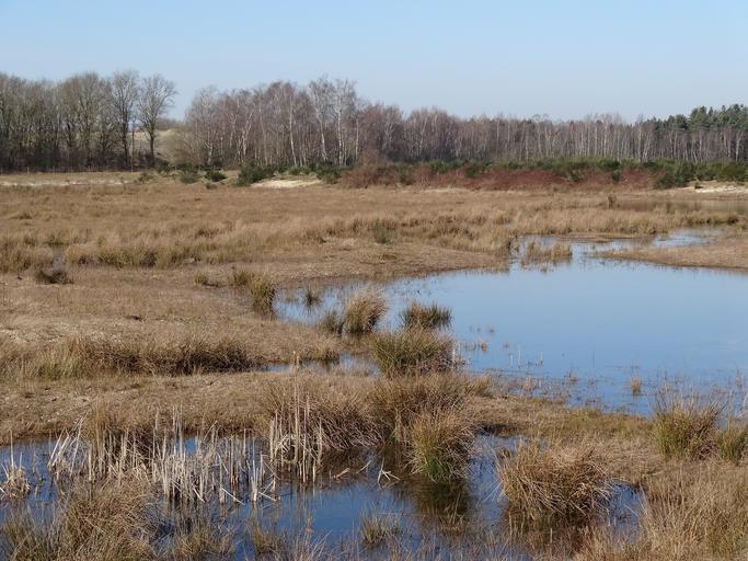 Keywords: nature water plas natural water landscape of course netherlands bright trees rest grasses blue air brabant north brabant skies blue sky spring sun plants reed grass