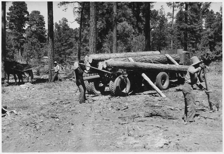 Keywords: Navajo crew loading logs for Navajo sawmill. Truck owned by Navajo contractor. - NARA - 295198.tif Scope and content General notes 295198 Local identifier Department of the Interior Bureau of Indian Affairs Phoenix Area Office Forestry and Grazing Division ca 1950 - NARA's Pacific Region Riverside NRHAR 23123 Cajalco Rd Perris CA 92570 Record group Record Group 75 Records of the Bureau of Indian Affairs 1793 - 1999 Record group ARC 404 Central Classified Files compiled 1927 - 1952 Series ARC 295178 File unit 339 3 Annual Forestry Report FY 1939 1939 - 1939 File unit ARC 295197 Variant control numbers NAIL Control Number NRHL-75-PAOFGDCCF-339NAV-GOF01<br /> Other Identifier CCF Box 180 File 339 3 Navajo yes Other versions <gallery> File Navajo_crew_loading_logs_for_Navajo_sawmill _Truck_owned_by_Navajo_contractor _-_NARA_-_295198 tif tif File Navajo_crew_loading_logs_for_Navajo_sawmill _Truck_owned_by_Navajo_contractor _-_NARA_-_295198 jpg jpg </gallery> NARA-cooperation PD-USGov NARA TIF images with categorized JPGs |