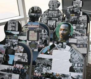 Keywords: Naval Hospital Bremerton Diversity Council hosts Black History Month Ceremony DVIDS2408620.jpg en Evoking Emotion through Art an interactive display on Naval Hospital Bremerton ™s Quarterdeck by Hospital Corpsman 2nd Class ViJorge Potal represents Rosa Parks and her refusal to move to the back of the bus Each chair is occupied by a silhouette and within each silhouette is a collage of significant events that helped change the course of history during the Civil Rights Movement A Viewer can take part and have a seat in the unoccupied chair The simple act of participating simulates Parks when she refused to move in 1955 The viewer is then asked to observe their immediate surroundings and the judging looks and disapproving stares Lastly the viewer is asked to take a closer look at the art work noting the symbolism of each silhouette and each picture starting from the back of the bus and gradually moving forward with the pictures photographs and images changing from black and white to fully colored The progression of color represents the progress made Official Navy photo by Douglas H Stutz NHB Public Affairs 2016-02-17 Douglas Stutz https //www dvidshub net/image/2408620 160217-N-HU933-062 2408620 PD-USGov Black History Month Images from DoD uploaded by Fæ |