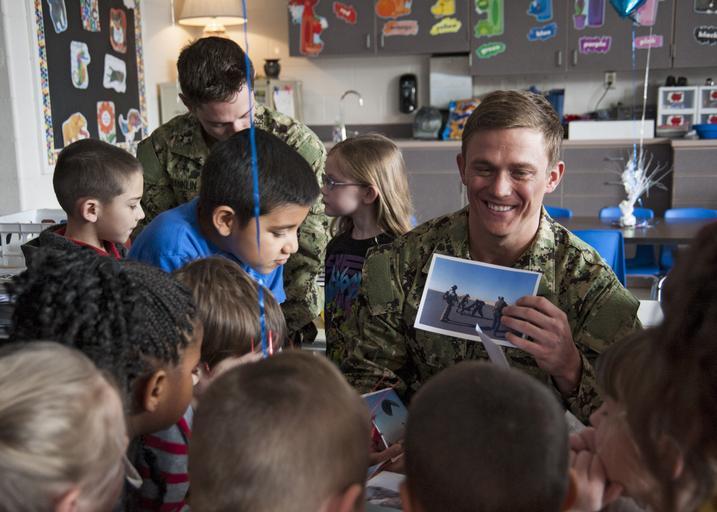 | Keywords: Navy EOD makes good on promise to children 130225-N-JV638-022.jpg  en Lt Keith Caton from Explosive Ordnance Disposal Mobile Unit EODMU 2 answers questions about EOD photos during a visit to Central Elementary School Sailors from EODMU-2 became pen pals with the students during a recent deployment as part of a community outreach program and agreed to visit the class upon their return to answer questions read stories and demonstrate the PackBot transportable robotic system as well as attend a luncheon held in their honor by the students U S Navy photo by Mass Communication Specialist 3rd Class Randy Savarese/Released 2013-02-25 Petty Officer 3rd Class Randy Savarese https //www dvidshub net/image/876373 130225-N-JV638-022 2013-02-28 10 58 MOYOCK NC US PD-USGov-Military-Navy PackBot Images from DoD uploaded by Fæ |
