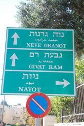 Keywords: Nayot 1.JPG Multilingual Israeli traffic sign in Nayot Jerusalem Israel on which the Arabic text is much smaller in size than the Hebrew and English text own 2007-08-07 16 02 15 Sir kiss Multilingual road signs in Israel