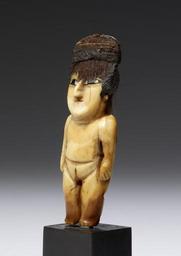 | Keywords: Nazca - Female Effigy Figure - Walters 2009207 - Three Quarter Left.jpg Andean civilization is renowned for spectacular textiles that were at the heart of social politics and economics from earliest times The fiber arts permeated all facets of daily existence from clothing to protect the body to bridges spanning treacherous gorges The form materials quality and decorative imagery on clothing conveyed a person's social status or political affiliation and even recounted his or her specific accomplishments on behalf of the state This female figure originally was dressed in clothing appropriate to her meaning as an offering- perhaps a building dedication cache or ritual deposit at a huaca a sacred location where divine forces are concentrated Coastal Andean peoples were keen observers of the vast ocean world The Nasca in particular relied heavily on marine resources for food and materials for a variety of uses such as the whale tooth from which this captivating lady was carved The salty ocean and its unusual creatures constituted a dyadic opposition to the earth with its fresh waters The carving of a ritual figurine from the tooth of a gigantic marine creature certainly carried extra spiritual significance 200 BC-AD 500 Early Intermediate sperm whale tooth shell hair cm 7 62 2 7 2 38 accession number 2009 20 7 80162 Throckmorton Fine Arts New York date and mode of acquisition unknown John G Bourne 1990s by purchase Walters Art Museum Gift of John Bourne 2009 place of origin South Coast Walters Art Museum license Pre-Columbian art in the Walters Art Museum Nazca art Media contributed by the Walters Art Museum needs category review Pre-Columbian bone artefacts |