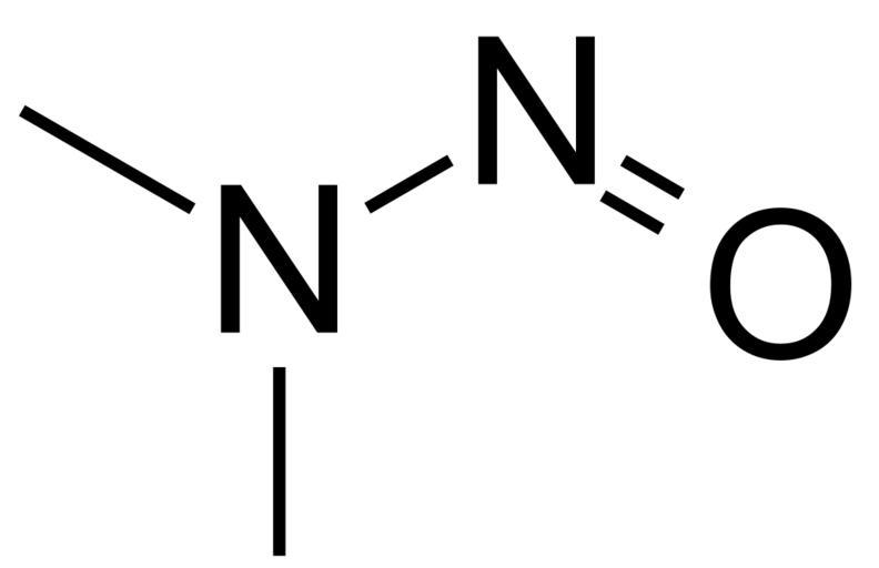 Keywords: NDMA.svg Chemical structure of NDMA N-nitrosodimethylamine Own 13 54 11 October 2012 UTC Ed Edgar181 200px Nitrosamines