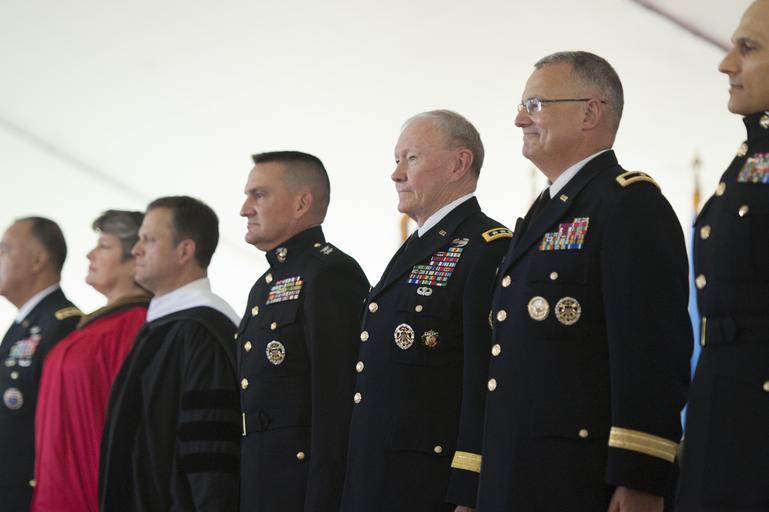 Keywords: NDU Graduation 150618-D-KC128-106.jpg en Chairman of the Joint Chiefs of Staff Gen Martin E Dempsey stands before delivering the commencement address at the 2015 graduation of National Defense University's College of International Security Affairs National War College Information Resources Management College and Dwight D Eisenhower School for National Security and Resource Strategy schools on Fort Lesley J McNair Washington D C June 18 2015 NDU is dedicated to being the premier national security institution focused on advanced joint education leader development and scholarship DoD Photo by Mass Communication Specialist 1st Class Daniel Hinton/released 2015-06-18 Petty Officer 1st Class Daniel Hinton https //www dvidshub net/image/2011321 150618-D-KC128-106 2015-06-18 14 17 WASHINGTON D C DC US PD-USGov Martin E Dempsey in 2015 Fort Lesley J McNair Images from DoD uploaded by Fæ |