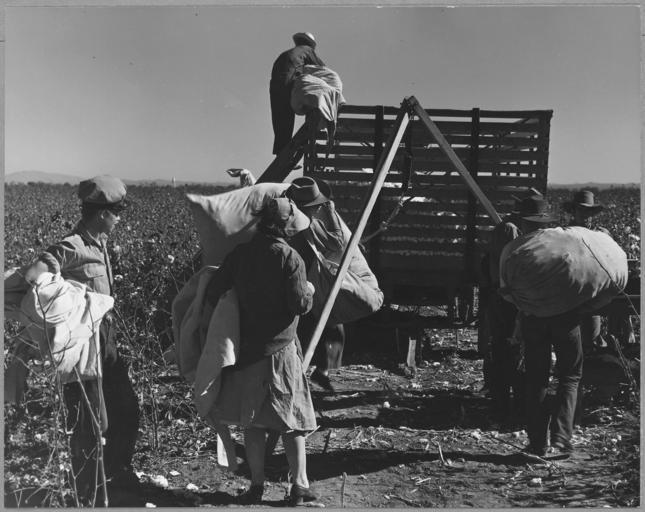Keywords: Near Coolidge, Arizona. These families are picking their own cotton. Mainly they are members of the . . . - NARA - 522210.jpg Scope and content Full caption reads as follows Near Coolidge Arizona These families are picking their own cotton Mainly they are members of the Casa Grande cooperative farm General notes 522210 Local identifier 83-G-44041 Department of Agriculture Bureau of Agricultural Economics Division of Economic Information ca 1922 - ca 1953 NARA-Author Lange Dorothea 1895-1965 Photographer 1372774 <br /> Still Picture Records Section Special Media Archives Services Division NWCS-S National Archives at College Park 8601 Adelphi Road College Park MD 20740-6001 11/1940 Record group Record Group 83 Records of the Bureau of Agricultural Economics 1876 - 1959 Record group ARC 412 Photographic Prints Documenting Programs and Activities of the Bureau of Agricultural Economics and Predecessor Agencies compiled ca 1922 - ca 1947 documenting the period ca 1911 - ca 1947 Series ARC 521048 File unit File unit ARC Variant control numbers NAIL Control Number NWDNS-83-G-44041 Other versions <gallery> File Near_Coolidge _Arizona _These_families_are_picking_their_own_cotton _Mainly_they_are_members_of_the_ _ _ _-_NARA_-_522210 tif tif File Near_Coolidge _Arizona _These_families_are_picking_their_own_cotton _Mainly_they_are_members_of_the_ _ _ _-_NARA_-_522210 jpg jpg </gallery> NARA-cooperation PD-USGov Dorothea Lange Pinal County Arizona