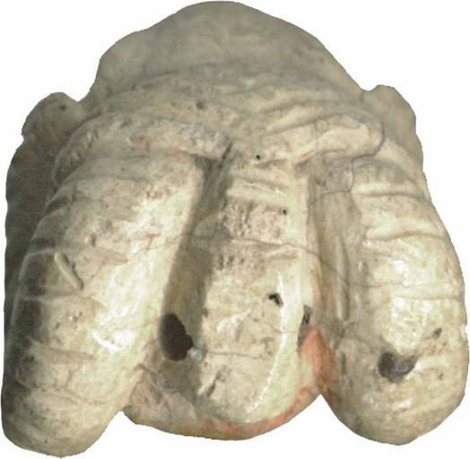 | Keywords: Near Eastern - Ram's Head - Walters 7131 - Back.jpg This tiny pendant is carved with close attention to anatomical detail The modeled eyes have long tear ducts There are ridges on the horns The hair over the forehead is indicated by stripes There are traces of red pigment on the face and under the jaw The piece is horizontally perforated through the knob placed behind the horns Pendants in the shape of rams' heads are well known in the Near East These heads differ from the familiar ram's head of the ancient Egyptian god Khnum in having horns that lie close to the head and a forelock date bone cm 0 78 1 73 1 1 accession number 71 31 26186 Henry Walters Baltimore date and mode of acquisition unknown Walters Art Museum Henry Walters Acquired by Henry Walters place of origin Near East Walters Art Museum license Ancient Near East art in the Walters Art Museum Jewellery in the Walters Art Museum Art of the ancient Near East Media contributed by the Walters Art Museum needs category review |