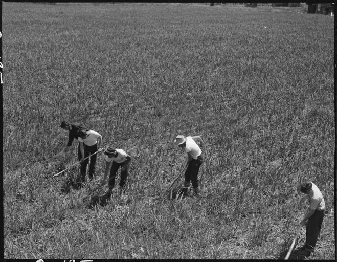 | Keywords: Near San Lorenzo, California. "Victory Corps" weeding garlic field. Thirty- seven high school have . . . - NARA - 537534.jpg  Scope and content The full caption for this photograph reads Near San Lorenzo California Victory Corps weeding garlic field Thirty- seven high school have been recruited and organized at the request of Caucasian growers to meet labor shortage This land was part of acreage leased and operated by five farmers of Japanese ancestry and their families prior to the evacuation General notes 537534 Local identifier 210-G-C185 Department of the Interior War Relocation Authority 02/16/1944 - 06/30/1946 NARA-Author Lange Dorothea 1895-1965 Photographer 1372774 <br /> Still Picture Records Section Special Media Archives Services Division NWCS-S National Archives at College Park 8601 Adelphi Road College Park MD 20740-6001 1942-05-05 Record group Record Group 210 Records of the War Relocation Authority 1941 - 1989 Record group ARC 537 Central Photographic File of the War Relocation Authority compiled 1942 - 1945 Series ARC 536000 File unit File unit ARC Variant control numbers NAIL Control Number NWDNS-210-G-C185 Other versions <gallery> File Near_San_Lorenzo _California _ Victory_Corps _weeding_garlic_field _Thirty-_seven_high_school_have_ _ _ _-_NARA_-_537534 tif tif File Near_San_Lorenzo _California _ Victory_Corps _weeding_garlic_field _Thirty-_seven_high_school_have_ _ _ _-_NARA_-_537534 jpg jpg </gallery> NARA-cooperation PD-USGov Japanese American internment processing in San Lorenzo California Farms in California Dorothea Lange Victory Corps |