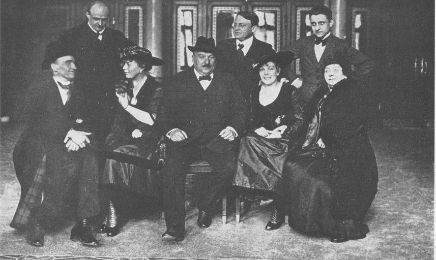 | Keywords: Nedbal-Vinobrani-Vinohrady1916.jpg en Oskar Nedbal with the cast of Vinohrady Musical Theatre Prague 1916 production of his operetta Vinobraní / Die Winzerbraut From the left Karel Hašler translator director Milan Karel Nedbal conductor Božena Durasová Julja Oskar Nedbal Karel Faltys Franjo Mimi Vilímová Lisa R Tůma Bogdan Anna Zelenková Mizzi Müller Miroslav Šulc Oskar Nedbal Státní nakladatelství krásné literatury hudby a umění Praha 1959 author 1916 PD-old-70 Oskar Nedbal Karel Hašler Divadlo na Vinohradech |