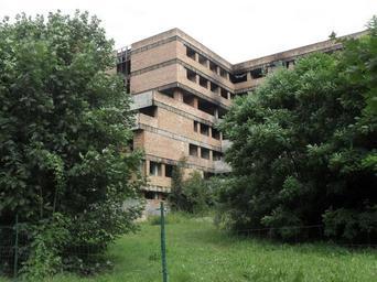 | Keywords: Nedostavěné hornické sanatorium Teplice Xa.jpg  cs Tato budova k nalezení na Pražské ulici pod Obchodní akademií měla kdysi sloužit jako hornické sanatorium Po změně režimu se měla dostavět jako ubytování pro lázeňský perzonál ale na to nezbyly peníze a stavba chátrá Fotografie je z roku 2008 v roce 2012 je už stavba obehnána plotem a obrostlá dřevinami záměrně vysázenými Stále se ovšem dovnitř dá dostat průlezem u Sovětského památníku own Takmocsekretovanej 2012 Nedostavěné hornické sanatorium Teplice Cc-zero  |