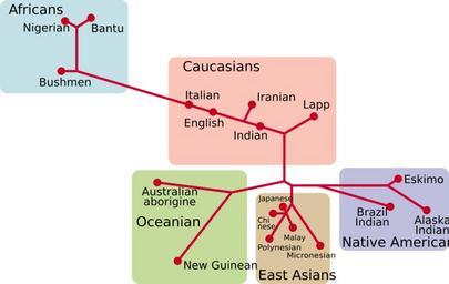 Keywords: Neighbor-joining Tree (Editable).svg This genetic distance map made in 2002 is an estimate of 18 world human groups by a neighbour-joining method based on 23 kinds of genetic information Fully-editable variation of new vector version of public domain image originally created by asdfgf with background and border removed If placing in an article as-is use Neighbor-joining Tree svg instead http //www geog or jp/journal/back/pdf111-6/p832-839L pdf East Eurasian Viewed from Genes - Naruya SAITOU http //www museum kyushu-u ac jp/WAJIN/113 html http //rosenberglab bioinformatics med umich edu/papers/microsats pdf Microsatellite evolution in modern humans a comparison of two data sets from the same populations - L JIN et al http //www journals uchicago edu/AJHG/journal/issues/v72n5/024787/024787 web pdf Features of Evolution and Expansion of Modern Humans Inferred from Genomewide Microsatellite Markers - Lev A Zhivotovsky et al http //www nature com/ng/journal/v36/n11s/pdf/ng1438 pdf Implications of biogeography of human populations for 'race' and medicine - Sarah A Tishkoff Kenneth K Kidd http //shrn stanford edu/workshops/revisitingrace/Jorde-Wooding2004 pdf Genetic variation classification and ˜race ™ - Lynn B Jorde et al http //scbe stanford edu/events/pdfs/genomebio pdf Categorization of humans in biomedical research genes race and disease - Neil Risch et al http //www as wvu edu/~dray/Papers/Witherspoon_et_al_2006_-_LINEs_and_human_populations pdf Human Population Genetic Structure and Diversity Inferred from Polymorphic L1 LINE-1 and Alu Insertions - D J Witherspoon et al http //www bio unc edu/courses/2006Fall/Biol423L/Pdfsforwebpage/AJPhysAnthrop03AyubSforzaHumanEvol pdf Reconstruction of Human Evolutionary Tree Using Polymorphic Autosomal Microsatellites - Qasim Ayub et al http //info med yale edu/genetics/kkidd/432 pdf search 'Understanding 20Human 20DNA 20Sequence 20Variation 20pdf' Understanding Human DNA Sequence Variation - K K KIDD et al http //www-bac esi umontreal ca/~dbin1001/h05/presentations/snp/Fan_et_al_2002 pdf Assessing DNA Sequence Variations in Human ESTs in a Phylogenetic Context Using High-Density Oligonucleotide Arrays - Jian-Bing Fan et al http //www erin utoronto ca/~eparra/profile/PDF 20files/Shriver 20et 20al 202005 pdf Large-scale SNP analysis reveals clustered and continuous patterns of human genetic variation - Mark D Shriver et al 2007-07-11 Raster version by asdfgf Vector version by JasonSpatola Main Hi-Res Version fonts converted to paths SVG Evolutionary biology SVG evolution Population genetics Human evolution |