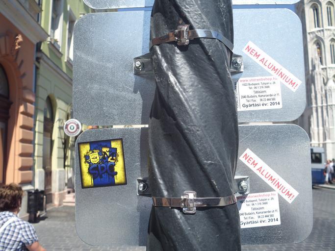 Keywords: Nem Aluminium traffic sign reverse.JPG en The reverse side of two traffic signs in Budapest Hungary on Tárnok utca close to Matthias Church There is a Nem alumínium No aluminium sticker on each of them intended to discourage would-be thieves from stealing them for resale as scrap 2014-08-16 11 43 00 own Jan Pešula cc-zero Uploaded with UploadWizard Road signs in Hungary Prevention |