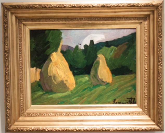 Keywords: Nemes-Lampérth - Hay-stacks at the forest edge.jpg Artwork Creator József Nemes Lampérth Erdőszéle boglyákkal 1911 oil on cardboard private collection accession number object history credit line Photo by Szilas at an exhibition of the Kieselbach Gallery Commonist PD-old-70 Paintings by József Nemes Lampérth |