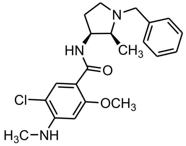 Keywords: Nemonapride structure.svg C - Structure of Nemonapride own 2008-03-02 Su-no-G PD Nitrogen heterocycles N-substituted primary amides
