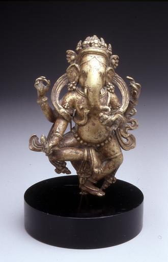 Keywords: Nepalese - Dancing Ganesha - Walters 543011.jpg Ganesha is a popular Hindu deity worshipped before undertaking a task and the son of the supreme god Shiva Ganesha has a childlike nature here eating from a bowl of sweets with his trunk as he sways His elephant head makes him easy to identify although he wasn't born with it Seeing his son for the first time Shiva flew into a jealous rage and decapitated Ganesha His mother demanded that Shiva replace the child's head; his servants returned with the head of an elephant century 15 16 gilt bronze cm 15 2 accession number 54 3011 5443 John and Berthe Ford Baltimore date and mode of acquisition unknown Walters Art Museum John Berthe Ford 2002 Desire and Devotion Art from India Nepal and Tibet in the John and Berthe Ford Collection The Walters Art Museum Baltimore; Birmingham Museum of Art Birmingham; Santa Barbara Museum of Art Santa Barbara; Albuquerque Museum Albuquerque 2001-2003 place of origin Nepal Walters Art Museum license Nepalese art in the Walters Art Museum Metalwork of Nepal Dancing Ganesha in sculpture Bronze of Nepal Hindu art in the Walters Art Museum |