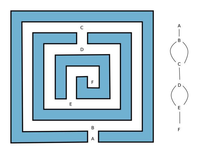 Keywords: Nested Labyrinth.svg Nested Maze and its abstract undirected graph of crossings own 2006-10-07 MistWiz Free to use copy modify Mazes undirected planar graphs