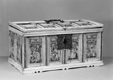 Keywords: Netherlandish - Casket with Scenes from the Passion of Christ - Walters 71251 - Three Quarter.jpg This type of large rectangular box elaborately decorated with scenes depicting either the Passion of Christ or the Life of the Virgin was produced in great quantity in 15th-century Flanders The artist drew inspiration from contemporary woodcuts particularly the Bible of the Poor Biblia Pauperum a pictorial Bible for the illiterate first produced ca 1430 This example depicts Christ's Passion The scenes of Christ's Arrest his Carrying of the Cross Entombment Harrowing of Hell Resurrection and Appearance to Mary Magdalene have all been taken from this source The carved panels retain much of their original paint and gilding The gilded bronze lock plate on top is a 17th-century addition ca 1450 Late Medieval ivory gilt bronze paint cm 16 1 31 5 19 4 accession number 71 251 39550 Count Girolamo Possenti Fabriano Sale Raphael Dura Florence April 1 1880 no 38 F Ongania Venice Henry Walters Baltimore by purchase Walters Art Museum Henry Walters Acquired by Henry Walters place of origin Flanders Walters Art Museum license Medieval art in the Walters Art Museum Renaissance applied arts in the Walters Art Museum Art of the Netherlands Media contributed by the Walters Art Museum needs category review Biblia pauperum |