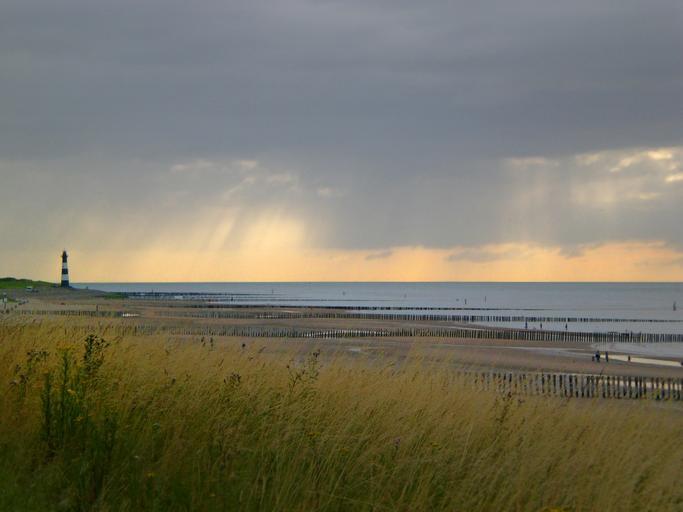 Keywords: netherlands breskens lighthouse beach clouds sea