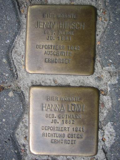 Keywords: Neubrandenburg Friedrich-Engels-Ring Stolpersteine.JPG Stolpersteine Jenny Hirsch und Hanna Löwi Friedrich-Engels-Ring 29 Neubrandenburg Mecklenburg-Vorpommern own 2012-10-20 LasseG 53 33 29 86 N 13 15 15 92 E Stolpersteine in Neubrandenburg Friedrich-Engels-Ring Cc-zero |