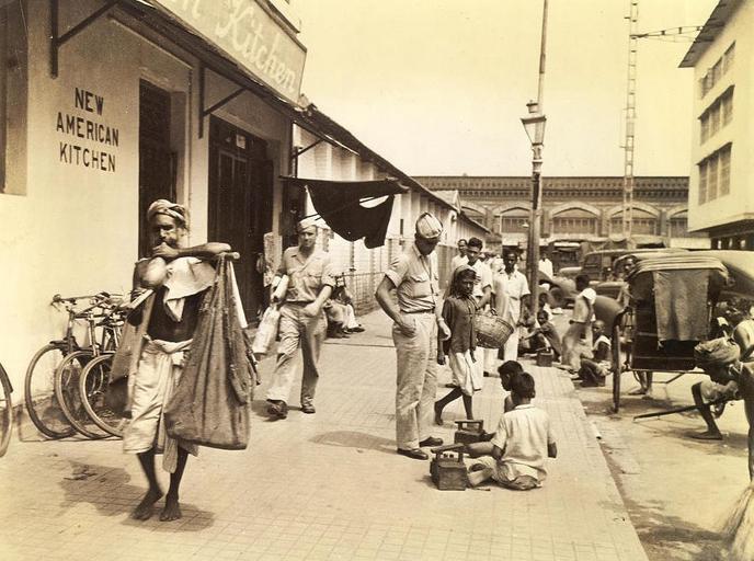 | Keywords: New American Kitchen resturant, Calcutta in 1945.jpg After a couple of years in India the bizarre aspects of street life become commonplae to the average soldier as evidenced by the scant notice given the passing snake-walla by the GI at right bargaining for a shine from one of he city's hundreds of bootblacks The New American Kitchen is a popular Chinese restaurant owned by a Portuguese and serves up a steak of chop suey before you can say Teek hai The South Asia Section of the Van Pelt Library University of Pennsylvania recently acquired from a bookdealer a photograph album consisting of 60 photographs of Calcutta taken most likely between 1945-1946 The photographer Mr Clyde Waddell also provided the interesting glosses accompanying each photograph Several attested copies of this work has emerged including one with a 'title page' held by the Southeastern Louisiana University in Hammond Louisiana Mr Waddell was a military photographer Many of his captions sound like annotations that would be found in a typical military magazine The album begins with several general long shots of Calcutta and ends with a picture of dhobi-s washermen washing clothes The text accompanying the last photograph also sounds as if the author intended to finish with that picture of one of the great mysteries of India The annotations have been included because of their intrinsic interest not only to the photographs but to a 'typical' American impression of India at this time 1945 http //www library upenn edu/collections/sasia/calcutta1947/ Clyde Waddell other versions PD-USGov Van Pelt Library University of Pennsylvania - Clyde Waddell Calcutta 1940's photos Uploaded with UploadWizard Original upload log page en wikipedia Shoeshine jpg 2005-10-05 20 14 37 Calcuttaphile 954×710 158393 bytes <nowiki>Photos taken by GIs in Calcutta in 1945 Obtained as a photo album by University of Pennsylvania Library The digital copies of these photos are available without any licence learnt by personal correspondence with nelsond pobox upenn edu Visit http </nowiki> |