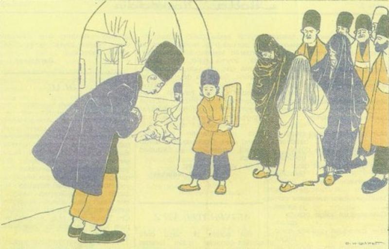 | Keywords: New bride. Molla Nasreddin.jpg en Molla Nasreddin magazine on Azeri published between 1906-1931<br> Respect to the new bride http //www artfagcity com/2010/09/15/img-mgmt-molla-nasreddin-the-magazine-that-wouldve-couldve-shouldve/ www artfagcity com Creator Oskar Shmerling - 1906 1917 PD-old Molla Nasreddin Marriage of Azerbaijan in art |
