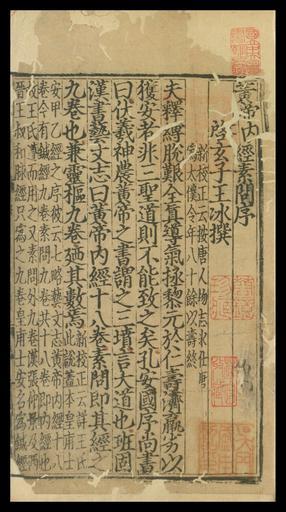 Keywords: New Edition with Supplemental Annotations of The Inner Canon of the Yellow Emperor. Su wen WDL11409.jpg Artwork ru Ван Бин fr Wang Bing en Wang Bing zh 王冰 pt Wang Bing ar وانغ، بينغ es Wang Bing ru овое издание Канона Желтого импе ато а о внут еннем с дополнительными коммента иями Су вэнь fr Nouvelle édition avec annotations supplémentaires du Canon interne de l'Empereur Jaune Su wen en New Edition with Supplemental Annotations of The Inner Canon of the Yellow Emperor Su wen zh 新刊 注释文黃 內经素问 pt Nova edição com anotações suplementares do Cânone interno do Imperador Amarelo Su wen ar طبعة جديدة مزودة بكتابات ملحقة للقانون الداخلي للإمبراطور الأصفر سو وين ru Д евний медицинский текст <em> Хуанди нэй цзин </em> Канон Желтого импе ато а о внут еннем уже упоминался в аботе <em> И вэнь чжи </em> Т актат о лите ату е входящей в состав <em> Хань шу </em> Книга о Хань классической исто ии Китая составленной в 111 году нашей э ы Он состоял из двух частей каждая из кото ых включала девять цзюаней <em> Су вэнь </em> Основные воп осы и <em> Лин шу </em> Духовный сте жень <em> Су вэнь </em> посвящена тео етическим основам китайской медицины и ее диагностическим методам  в то в емя как в Лин шу под обно ассмат ивается акупункту а азвание <em> Хуанди</em><em> нэй цзин </em> часто относят только к более влиятельному тексту <em> Су вэнь </em> По п ошествии столетий часть мате иалов из этой аботы была уте яна в том числе седьмой цзюань <em> Су вэнь </em> Работа изложена в фо ме диалога п еимущественно между Желтым импе ато ом и одним из его в ачей Цибо В <em> нэй цзин </em> п едставлены тео етические основы т адиционной китайской медицины под обно ассказывается о внут енних о ганах и ассмат иваются основные и вто остепенные каналы человеческого тела п ичины болезни патология диагностика подде жание хо ошего здо овья и д угие воп осы В аботе излагается тео ия согласно кото ой вселенная состоит из азличных сил и п инципов таких как инь и ян Ци и пять стихий или фаз Эти силы поддаются ациональному познанию и человек способен сох анить баланс или восстановить баланс и здо овье поняв законы этих п и одных сил Впе вые <em> Канон о внут еннем </em> был составлен в пе иод С ажающихся ца ств 475 221 гг до нашей э ы Позднее <em> Су вэнь </em> и <em> Лин шу </em> издавались по отдельности Большинство изданий <em> Су вэнь </em> выпускалось с коммента иями К числу наиболее анних относится издание шестого века выпущенное в пе иод Шести династий 220 589 гг с коммента иями Цюань Юаньци В 762 году в эпоху династии Тан Ван Бин выпустил пе е аботанное издание <em> Канона о внут еннем </em> с коммента иями основанное на аботе Цюань Юаньци и состоявшее из 24 цзюаней вместо о игинальных девяти К XI веку в эпоху династии Сун по п иказу импе ато а это сочинение было пе еиздано под едакцией в ача Линь И п и этом за основу была взята абота Ван Бина Более поздние издания большей частью п едставляли собой пе е аботанные ве сии издания выпущенного в эпоху Сун Здесь п едставлено издание эпохи Юань состоящее из 12 цзюаней однако по своему соде жанию оно п актически полностью совпадает с едакцией эпохи Сун В конце аботы имеется сделанная от уки надпись ученого эпохи ин кото ый именует себя бедным ученым из Циньшуя Данный экземпля анее находился в частной коллекции известного библиофила Чжан Се 1753 1808 гг жившего в пе иод п авления династии Цин и его внука Чжан Жунцзина одился в 1803 году <br> едицина китайская fr L'ancien texte médical <em>Huangdi nei jing</em> Canon interne de l'Empereur Jaune était déjà répertorié dans <em>Y</em><em>i wen zhi</em> Traité de littérature de <em>Han shu</em> Livre des Han livre classique d'histoire chinoise achevé en l'an 111 après J -C Il comportait deux textes <