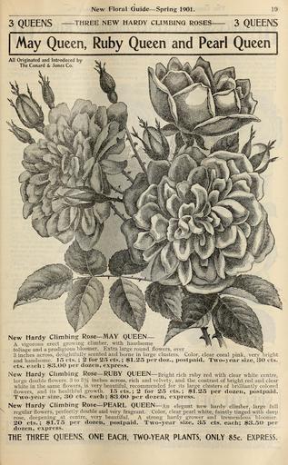 Keywords: New floral guide (16677037859).jpg New Floral Guide Spring 1901 <br> 19 <br> 3 QUEENS THREE NEW HARDY CLIMBING ROSES- 3 QUEENS <br> May Queen Ruby Queen and Pearl Queen <br> All Originated and Introduced by <br> The Conard Jones Co <br> New Hardy Climbing Rose MAY QUEEN <br> A vigorous erect growing climber with handsome <br> ioliage and a prodigious bloomer Extra large round flowers over <br> 3 inches across delightfully scented and borne in large clusters Color clear coral pink very 'bright <br> and handsome 15 ets ; 2 for 25 cts ; 1 25 per doz postpaid Two-year size 30 cts <br> cts eacli; 3 00 per dozen express <br> New Hardy Climbing Rose RUBY QUEEN Bright rich ruby red with clear white centre <br> large double flowers 3 to 2 i inches across rich and velvety and the contrast of bright red and clear <br> white in the same flowers is very beautiful recommended for its large clusters of brilliantly colored <br> flowers and its healthful growth 15 cts ; 2 for 25 cts ; 1 25 per dozen postpaid <br> Two-year size 30 cts each; 3 00 per dozen express <br> New Hardy Climbing Rose PEARL QUEEN An elegant new hardy climber large full <br> regular flowers perfectly double and very fragrant Color clear pearl white faintly tinged with deep <br> rose deepening at centre very beautiful A strong hardy grower and tremendous bloomer <br> 20 cts ; 1 75 per dozen postpaid Two-jear size 35 cts each; 3 50 per <br> dozen express <br> THE THREE QUEENS ONE EACH TWO-YEAR PLANTS ONLY 85c EXPRESS 42484181 134532 67120 Page 19 Text http //www biodiversitylibrary org/page/42484181 1901 10 1111/j 1469-7998 1865 tb02381 x Conard Jones Co West Grove Pa ; Henry G Gilbert Nursery and Seed Trade Catalog Collection Biodiversity Heritage Library New floral guide 1901 Garden Stories Bulbs Plants Catalogs Nursery stock Plants Ornamental Roses Seeds U S Department of Agriculture National Agricultural Library bhl page 42484181 dc identifier http //biodiversitylibrary org/page/42484181 Conard Jones Co Flowers West Grove PA Conard Jones Co bhlGardenStories BHLinbloom bulbs plants plants ornamental u s department of agriculture national agricultural library west grove pa conard jones co bhlgardenstories bhlinbloom Information field Flickr posted date ISOdate 2015-03-19 Check categories 2015 August 23 CC-BY-2 0 BioDivLibrary https //flickr com/photos/61021753 N02/16677037859 2015-08-23 23 50 28 cc-by-2 0 PD-old-70-1923 New floral guide 1901 Photos uploaded from Flickr by FĂŚ using a script |