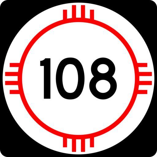 Keywords: New Mexico 108.svg 750 mm by 750 mm 30 in by 30 in New Mexico state road shield made to the specifications of the http //nmshtd state nm us/upload/images/Plans_Specs_Estimates/Division 20700/701/701 pdf PS E Standard Drawings which specifies a 30 by 30 shield for 3-digit roads Pictures of actual shields were also used for reference Uses the Roadgeek 2005 fonts United States law does not permit the copyrighting of typeface designs and the fonts are meant to be copies of a U S Government-produced work anyway self-created using Inkscape and Image New Mexico 3di svg 2008-03-26 Mr Matté Own work all rights released Public domain New Mexico State Road shields 108 number Shields created by User Mr Matté |