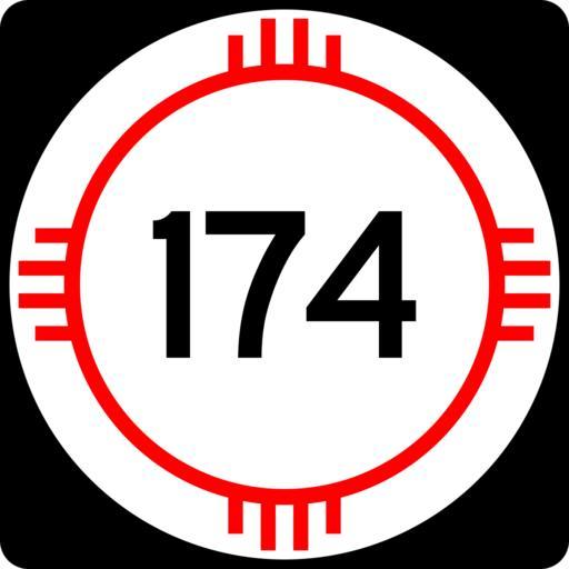 Keywords: New Mexico 174.svg 750 mm by 750 mm 30 in by 30 in New Mexico state road shield made to the specifications of the http //nmshtd state nm us/upload/images/Plans_Specs_Estimates/Division 20700/701/701 pdf PS E Standard Drawings which specifies a 30 by 30 shield for 3-digit roads Pictures of actual shields were also used for reference Uses the Roadgeek 2005 fonts United States law does not permit the copyrighting of typeface designs and the fonts are meant to be copies of a U S Government-produced work anyway self-created using Inkscape and Image New Mexico 3di svg 2008-03-26 Mr Matté Own work all rights released Public domain Created with Inkscape New Mexico State Road shields 174 number Shields created by User Mr Matté |