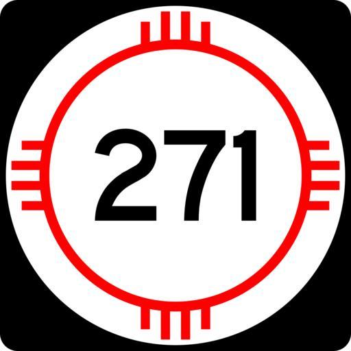 | Keywords: New Mexico 271.svg 750 mm by 750 mm 30 in by 30 in New Mexico state road shield made to the specifications of the http //nmshtd state nm us/upload/images/Plans_Specs_Estimates/Division 20700/701/701 pdf PS E Standard Drawings which specifies a 30 by 30 shield for 3-digit roads Pictures of actual shields were also used for reference Uses the Roadgeek 2005 fonts United States law does not permit the copyrighting of typeface designs and the fonts are meant to be copies of a U S Government-produced work anyway self-created using Inkscape and Image New Mexico 3di svg 2008-03-26 Mr Matté Own work all rights released Public domain New Mexico State Road shields Shields created by User Mr Matté |