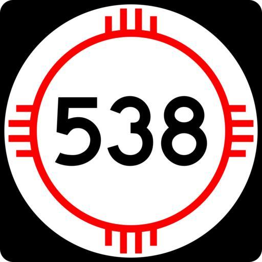 Keywords: New Mexico 538.svg 750 mm by 750 mm 30 in by 30 in New Mexico state road shield made to the specifications of the http //nmshtd state nm us/upload/images/Plans_Specs_Estimates/Division 20700/701/701 pdf PS E Standard Drawings which specifies a 30 by 30 shield for 3-digit roads Pictures of actual shields were also used for reference Uses the Roadgeek 2005 fonts United States law does not permit the copyrighting of typeface designs and the fonts are meant to be copies of a U S Government-produced work anyway self-created using Inkscape and Image New Mexico 3di svg 2008-03-26 Mr Matté Own work all rights released Public domain New Mexico State Road shields Shields created by User Mr Matté |
