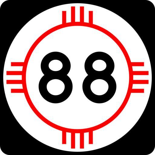 Keywords: New Mexico 88.svg 600 mm by 600 mm 24 in by 24 in New Mexico state road shield made to the specifications of the http //nmshtd state nm us/upload/images/Plans_Specs_Estimates/Division 20700/701/701 pdf PS E Standard Drawings Uses the Roadgeek 2005 fonts United States law does not permit the copyrighting of typeface designs and the fonts are meant to be copies of a U S Government-produced work anyway self-created using Inkscape and Image US DOT FHWA MUTCD SHS 2004 3-7 M1-6 450x450mm 00 svg 2008-03-26 Mr Matté Own work all rights released Public domain New Mexico State Road shields Shields created by User Mr Matté |
