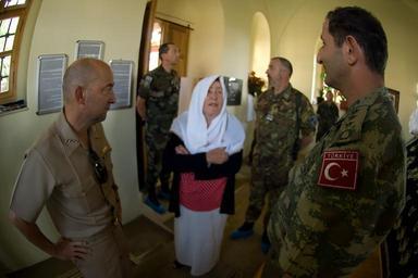 Keywords: New SACEUR makes first visit to Kosovo DVIDS461453.jpg en Adm James Stavridis supreme allied commander europe today travelled to Pristina Kosovo to meet with Kosovo Security Force Minister Fehmi Mujota commander of NATO's Kosovo Force; Lt Gen Giuseppe Emilio Gay; and KFOR Multinational Task Forces commanders Stavridis took the opportunity to discuss the current Kosovo security situation NATO's recent decision to reduce the profile of NATO forces in Kosovo the KSF training and recruiting progress training resources and equipment requirements as well as the current status of the EULEX deployment I am very satisfied with the latest developments in Kosovo The NAC decision to further reduce the profile of NATO forces in Kosovo is a clear indication of confidence in local capacity capability and responsibility The government of Kosovo is steadily taking on more and more of the responsibility for ensuring the rule of law and governance of the Kosovo population said Stavridis after meeting with Minister Mujota NATO will remain committed to promoting peace stability prosperity and respect for human rights in the region Our goal is to see the responsibility for maintaining peace shift to the local population and institutions further emphasized Stavridis Addressing MNTF commanders Stavridis said The progress NATO achieved in Kosovo is significant and KFOR's move toward Deterrent Presence is a sign of the Alliance's confidence in the progress made It allows NATO to adopt a new force structure concept reducing the number of troops deployed in Kosovo Stavridis continued During his Kosovo visit Stavridis also visited Gazimestan monument the site of the Battle of Kosovo which took place in 1389 and Sultan Murad's Tomb It was Admiral's Stavridis first visit in Kosovo since assuming his post as Supreme Commander Allied Powers Europe commander of NATO's Allied Command Operations earlier this month 2009-07-29 https //www dvidshub net/image/461453 090729-D-+++++-059 2011-09-23 12 40 PRISTINA ZZ PD-USGov James Stavridis Images from DoD uploaded by Fæ |