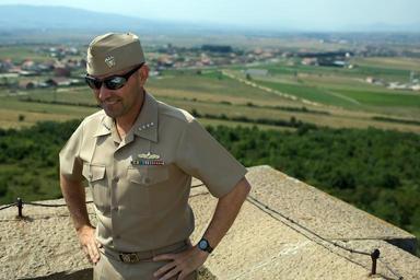 Keywords: New SACEUR makes first visit to Kosovo DVIDS461469.jpg en Adm James Stavridis supreme allied commander europe today travelled to Pristina Kosovo to meet with Kosovo Security Force Minister Fehmi Mujota commander of NATO's Kosovo Force; Lt Gen Giuseppe Emilio Gay; and KFOR Multinational Task Forces commanders Stavridis took the opportunity to discuss the current Kosovo security situation NATO's recent decision to reduce the profile of NATO forces in Kosovo the KSF training and recruiting progress training resources and equipment requirements as well as the current status of the EULEX deployment I am very satisfied with the latest developments in Kosovo The NAC decision to further reduce the profile of NATO forces in Kosovo is a clear indication of confidence in local capacity capability and responsibility The government of Kosovo is steadily taking on more and more of the responsibility for ensuring the rule of law and governance of the Kosovo population said Stavridis after meeting with Minister Mujota NATO will remain committed to promoting peace stability prosperity and respect for human rights in the region Our goal is to see the responsibility for maintaining peace shift to the local population and institutions further emphasized Stavridis Addressing MNTF commanders Stavridis said The progress NATO achieved in Kosovo is significant and KFOR's move toward Deterrent Presence is a sign of the Alliance's confidence in the progress made It allows NATO to adopt a new force structure concept reducing the number of troops deployed in Kosovo Stavridis continued During his Kosovo visit Stavridis also visited Gazimestan monument the site of the Battle of Kosovo which took place in 1389 and Sultan Murad's Tomb It was Admiral's Stavridis first visit in Kosovo since assuming his post as Supreme Commander Allied Powers Europe commander of NATO's Allied Command Operations earlier this month Stavridis is shown around the Gazimestan Monument during his first visit to Kosovo Gazimestan is the n 2009-07-29 https //www dvidshub net/image/461469 090729-D-+++++-183 2011-09-23 12 50 PRISTINA ZZ PD-USGov James Stavridis Images from DoD uploaded by Fæ |