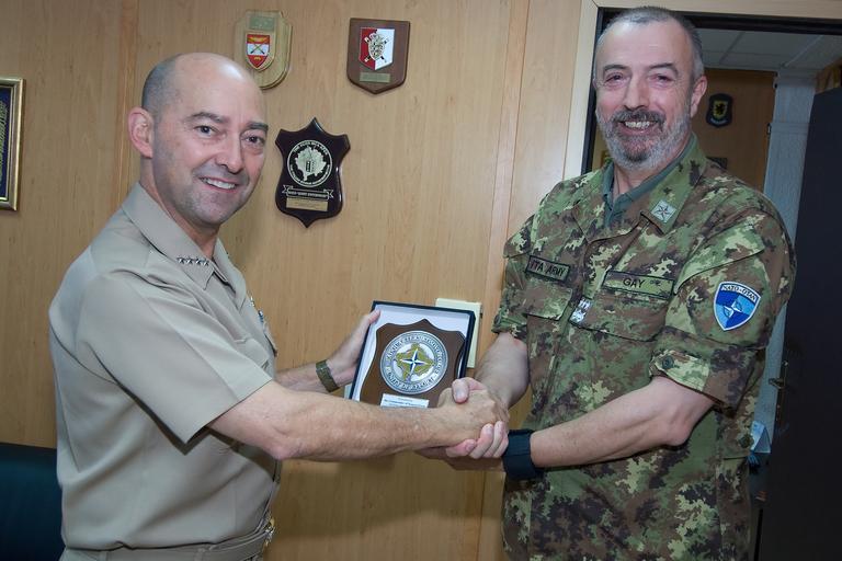 Keywords: New SACEUR makes first visit to Kosovo DVIDS461442.jpg en Adm James Stavridis supreme allied commander europe today travelled to Pristina Kosovo to meet with Kosovo Security Force Minister Fehmi Mujota commander of NATO's Kosovo Force; Lt Gen Giuseppe Emilio Gay; and KFOR Multinational Task Forces commanders Stavridis took the opportunity to discuss the current Kosovo security situation NATO's recent decision to reduce the profile of NATO forces in Kosovo the KSF training and recruiting progress training resources and equipment requirements as well as the current status of the EULEX deployment I am very satisfied with the latest developments in Kosovo The NAC decision to further reduce the profile of NATO forces in Kosovo is a clear indication of confidence in local capacity capability and responsibility The government of Kosovo is steadily taking on more and more of the responsibility for ensuring the rule of law and governance of the Kosovo population said Stavridis after meeting with Minister Mujota NATO will remain committed to promoting peace stability prosperity and respect for human rights in the region Our goal is to see the responsibility for maintaining peace shift to the local population and institutions further emphasized Stavridis Addressing MNTF commanders Stavridis said The progress NATO achieved in Kosovo is significant and KFOR's move toward Deterrent Presence is a sign of the Alliance's confidence in the progress made It allows NATO to adopt a new force structure concept reducing the number of troops deployed in Kosovo Stavridis continued During his Kosovo visit Stavridis also visited Gazimestan monument the site of the Battle of Kosovo which took place in 1389 and Sultan Murad's Tomb It was Admiral's Stavridis first visit in Kosovo since assuming his post as Supreme Commander Allied Powers Europe commander of NATO's Allied Command Operations earlier this month Stavridis receives a plaque from COMKFOR Lt Gen Giuseppe Gay during his first visit to KFOR o 2009-07-29 left https //www dvidshub net/image/461442 090729-D-+++++-017 2011-09-23 12 37 PRISTINA ZZ PD-USGov James Stavridis Images from DoD uploaded by Fæ |