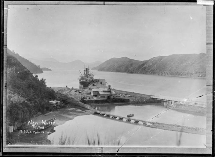 | Keywords: blackandwhite monochrome photo border outdoor serene black and white View of the new wharf at Picton, circa late 1910s. Photograph taken by J L Jones (bookseller in Picton). Inscriptions: Inscribed - Photographer's title on negative -bottom left: New wharf. Picton. No. 3663. Protd. J.L. Jones. Quantity: 1 b&w original negative(s). Physical Description: Dry plate glass negative Jones, John Lewis, fl 1918. New wharf at Picton - Photograph taken by J L Jones. Price, William Archer, 1866-1948 :Collection of post card negatives. Ref: 1/2-000619-G. Alexander Turnbull Library, Wellington, New Zealand. natlib.govt.nz/records/22778765 View of the new wharf at Picton, circa late 1910s. Photograph taken by J L Jones (bookseller in Picton). Inscriptions: Inscribed - Photographer's title on negative -bottom left: New wharf. Picton. No. 3663. Protd. J.L. Jones. Quantity: 1 b&w original negative(s). Physical Description: Dry plate glass negative Jones, John Lewis, fl 1918. New wharf at Picton - Photograph taken by J L Jones. Price, William Archer, 1866-1948 :Collection of post card negatives. Ref: 1/2-000619-G. Alexander Turnbull Library, Wellington, New Zealand. natlib.govt.nz/records/22778765 |