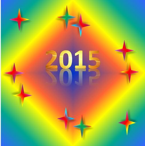 Keywords: new year 2015 year gold stars bright shiny january celebrate rainbow colors red orange yellow green blue indigo violet diamond shapes gradient abstract golden party glow