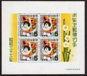 | Keywords: New year greeting stamp 1958 in Japan.jpg en New year greeting stamp issued in Japan in 1957 for the Year 1958 ja 昭和33年お年玉郵便切手 の景品用小型シート 1958年1 20日発行 発行後50年経過しているため著 権 護 間は終了 日 国郵政 発行の郵便切手 arpkazu 1957-12-20 PD-Japan-organization Dogs on stamps Miniature sheet of Japan New Year stamps Stamps of Japan 1957 Animals on stamps to be categorised by country |