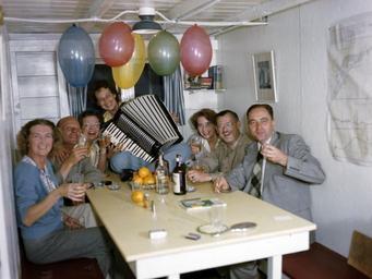 | Keywords: florida state library and archives of florida statelibraryandarchivesofflorida joseph janney steinmetz collection josephjanneysteinmetzcollection new year's eve newyearseve parties boats boating recreation lazy bones (shantyboat) lazybonesshantyboat cruises 1940s lois foley steinmetz loisfoleysteinmetz accordions musicians caloosahatchee river caloosahatcheeriver fort myers fortmyers clewiston baloons drinks friends celebrations lois duncan foley steinmetz loisduncanfoleysteinmetz musical instruments musicalinstruments groupshot people indoor Local call number: JJS0424 Title: New Year's Eve party aboard the shantyboat Lazy Bones Date: December 31, 1947 General Note: Lois Foley Steinmetz plays the accordion for friends on a trip up the Caloosahatchee River between Fort Myers and Clewiston. Physical descrip: 1 transparency - col. - 4 x 5 in. Series Title: Joseph Janney Steinmetz Collection Repository: State Library and Archives of Florida, 500 S. Bronough St., Tallahassee, FL 32399-0250 USA. Contact: 850.245.6700. Archives@dos.myflorida.com Persistent URL: floridamemory.com/items/show/245401 Local call number: JJS0424 Title: New Year's Eve party aboard the shantyboat Lazy Bones Date: December 31, 1947 General Note: Lois Foley Steinmetz plays the accordion for friends on a trip up the Caloosahatchee River between Fort Myers and Clewiston. Physical descrip: 1 transparency - col. - 4 x 5 in. Series Title: Joseph Janney Steinmetz Collection Repository: State Library and Archives of Florida, 500 S. Bronough St., Tallahassee, FL 32399-0250 USA. Contact: 850.245.6700. Archives@dos.myflorida.com Persistent URL: floridamemory.com/items/show/245401 |