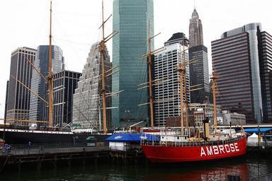 Keywords: new york city manhattan island downtown wall street skyline architecture tower building seaport boat ship